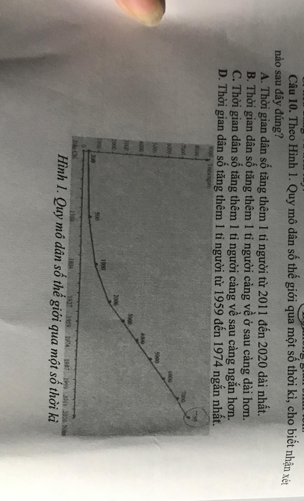 Ta không chọn A vì thời gian để tăng 1 tỉ người dài nhất là khoảng thời gian từ năm trước đầu Công Nguyên đến năm 1804. Nhìn trên hình ta cũng có thể thấy độ dài tương đối.
