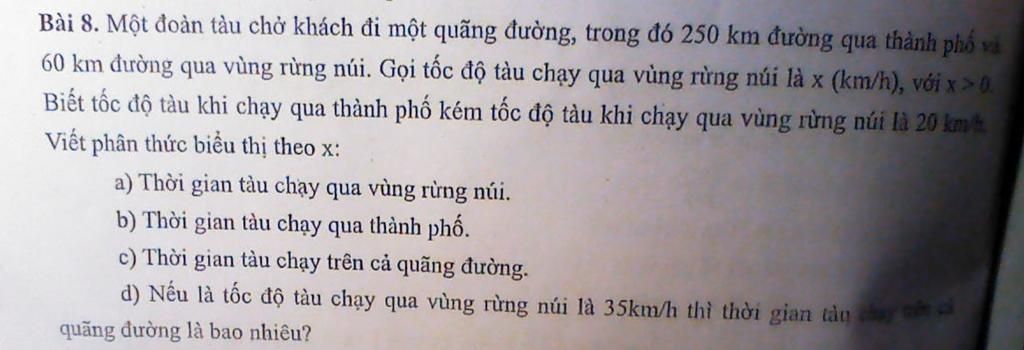 `a)` Thời gian tàu chạy qua vùng rừng núi là: `60/x` `(`giờ`)`