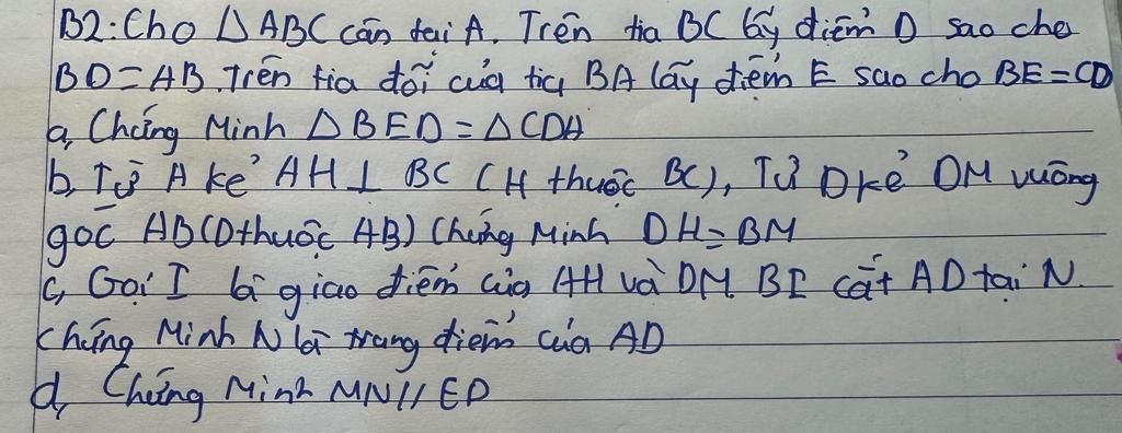 B2: Cho DABC cân tại A. Trên tia BC lấy điểm D sao cho