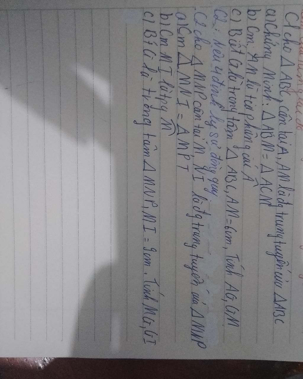 Cl cho A ABC, can taiA, AM ladg trung tuyên ciw AABC