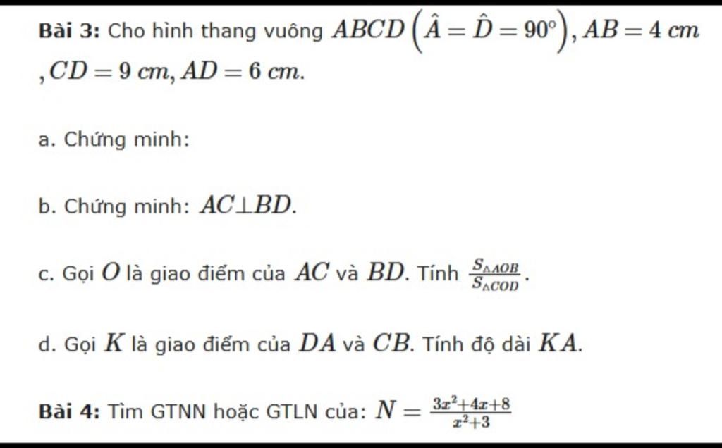Bài 3: Cho hình thang vuông ABCD(Â=D=90°), AB=4cm