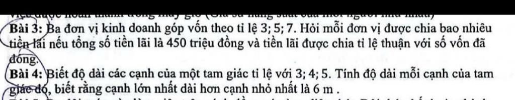 Vậy số tiền lãi của ba đơn vị kinh doanh lần lượt là `90,150,210` (triệu đồng)
