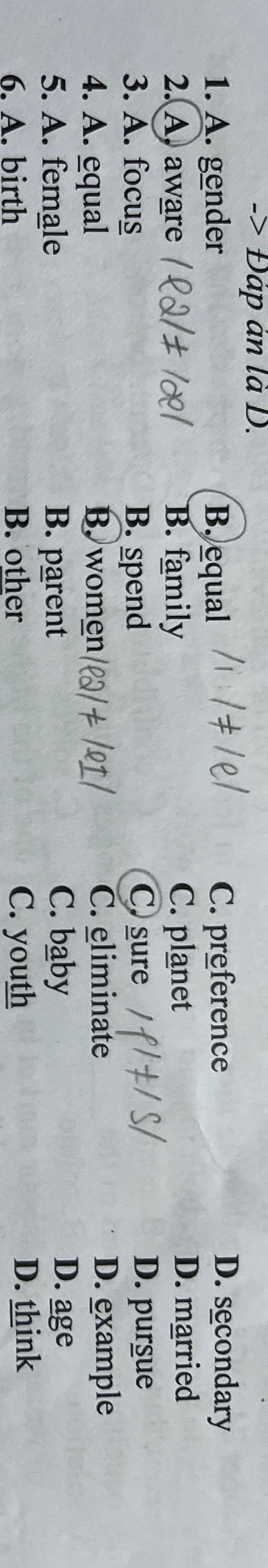 `-` từ nào phát âm khác so với các từ còn lại `->` khoanh