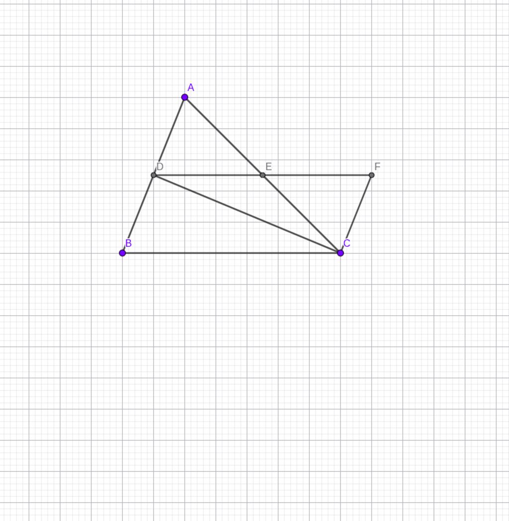 Cho tam giác ABC, D là trung điểm của AB, E là trung điểm của AC, vẽ điểm F sao cho E là trung điểm của DF. A chứng minh tam giác AED bằng tam giác CEF. B chứng minh DB bằng CF. C chứng minh tam giác BDC bằng tam giác FCD.