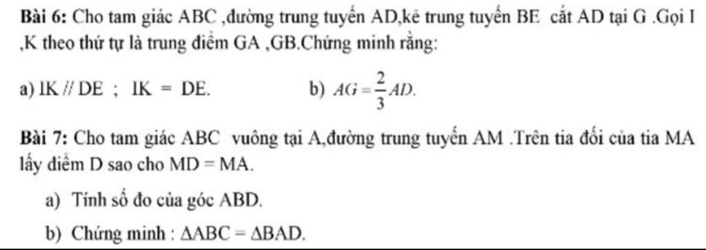 CMTT cho ΔABC với D là trung điểm BC(AD là trung tuyến) và E là trung điểm AC(BE là trung tuyến)
