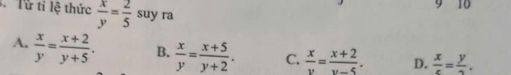 Từ tỉ lệ thức $\dfrac{x}{y}$ = $\dfrac{2}{5}$