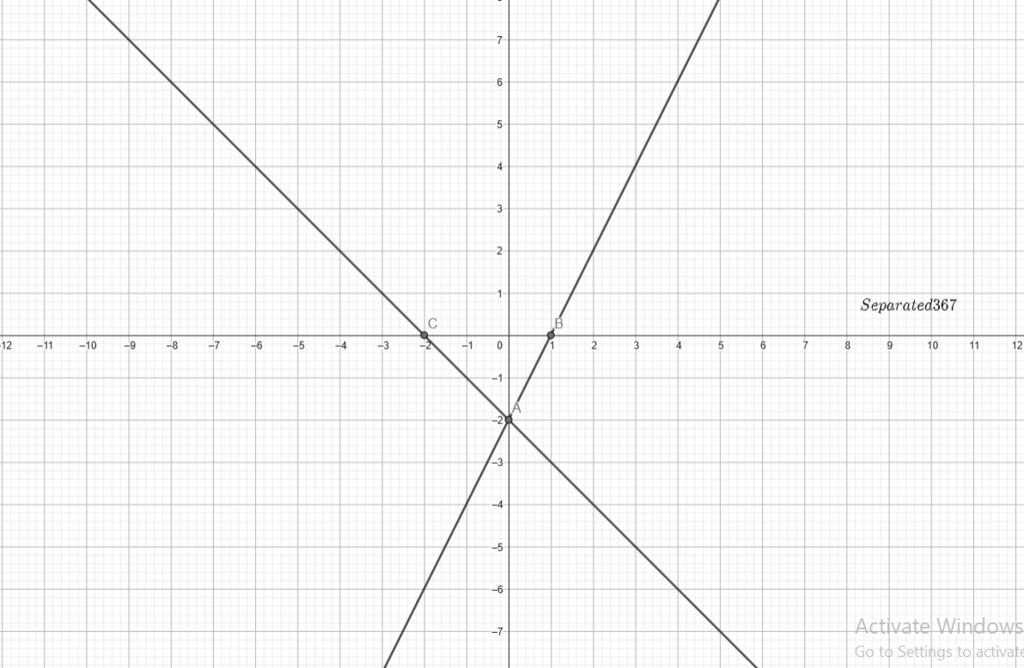 Do đó điểm `C(1; 0)` thuộc đồ thị hàm số `y=2x-2`