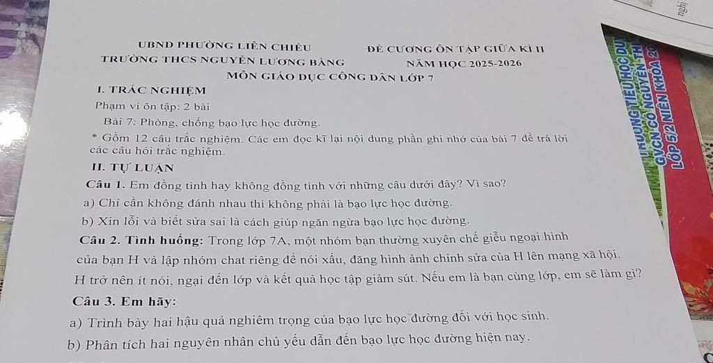 `@` Can ngăn nhóm bạn dừng các hành vi chế giễu, nói xấu, và đăng ảnh bạn H lên mạng xã hội, giải thích rằng đó là bạo lực học đường và gây tổn thương cho bạn H