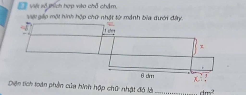 `S_(đáy ) =2xxaxxb=2xx6xx1=12dm^2` chiều dài : `a=6dm` chiều rộng : `b=1dm` chiều cao : `h=1dm`