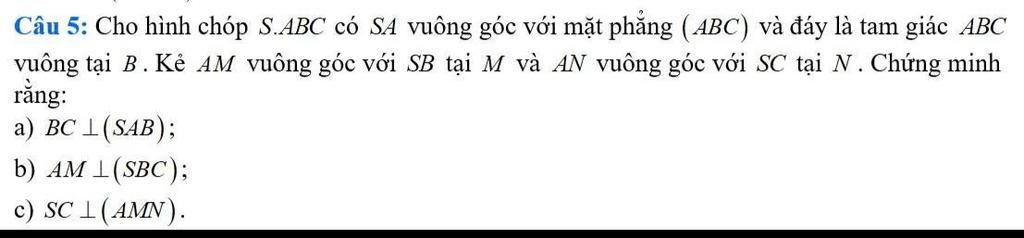 $\begin{cases} AM \perp (SBC) \Rightarrow AM \perp SC & (SC \subset (SBC)) \\ AN \perp SC \ \text{(gt)} \end{cases}$