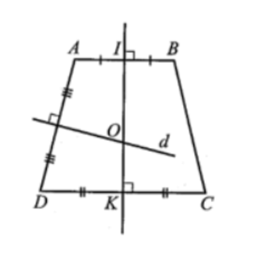 Gọi đường trung trực `d` của `AD`. Gọi `O` là giao điểm của `d` và `IK.`