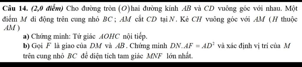& \text{Để } \Delta MNF \text{ lớn nhất} \\