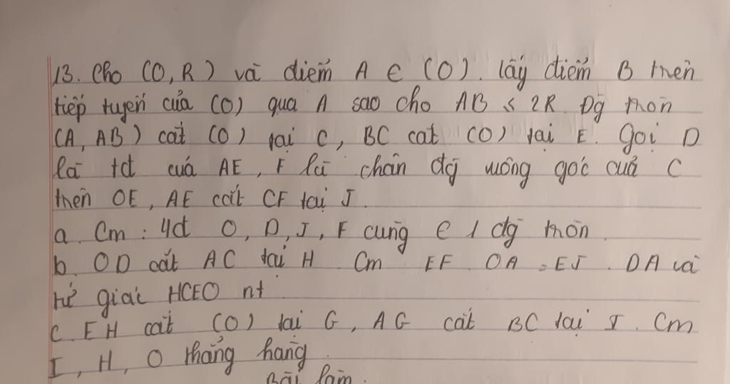 13. Cho CO,R) và điểm ACCO) lấy điểm B trên
