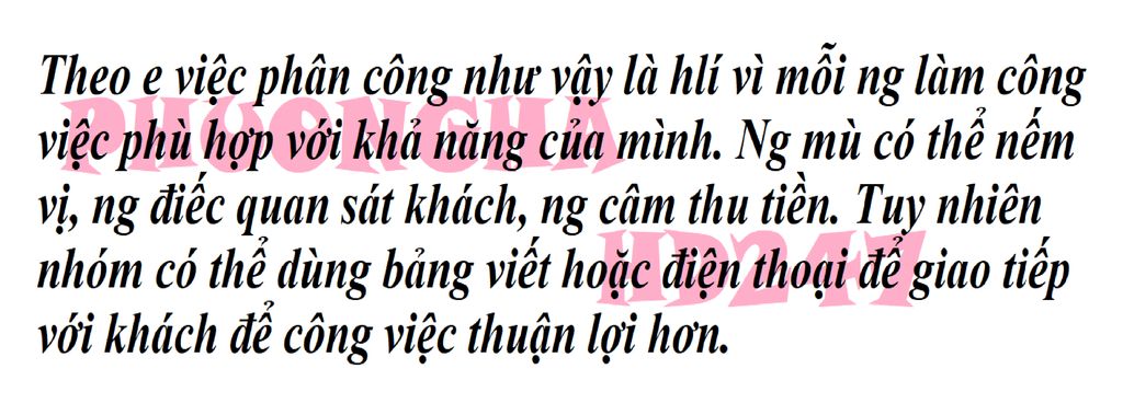 `-` Tuy nhiên để tốt hơn thì nhóm nên hỗ trợ lẫn nhau và sử dụng công nghệ để nâng cao trải nghiệm khách hàng