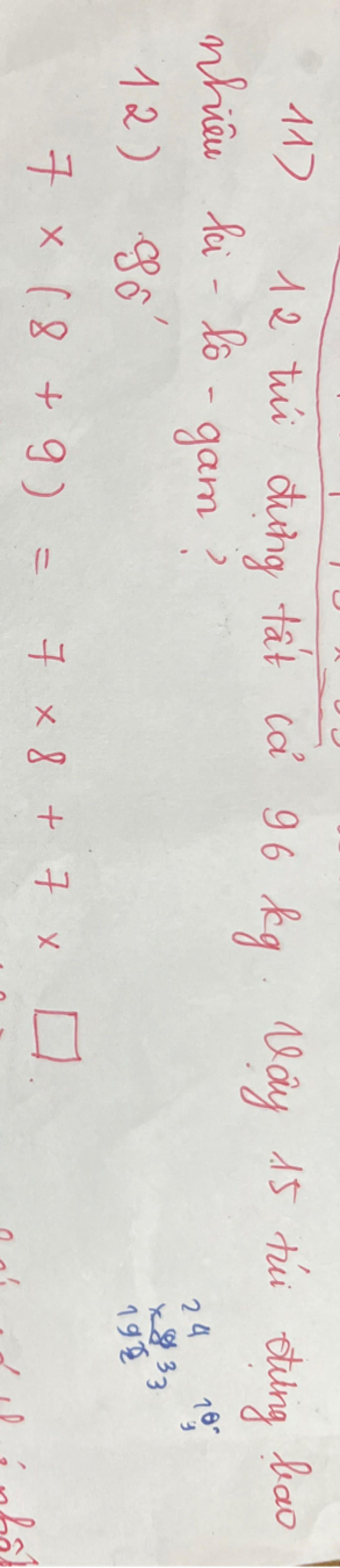 `7 xx ( 8 +9) = 7 xx 8 + 7 xx 9` ( Tính chất phân phối trong phép nhân )