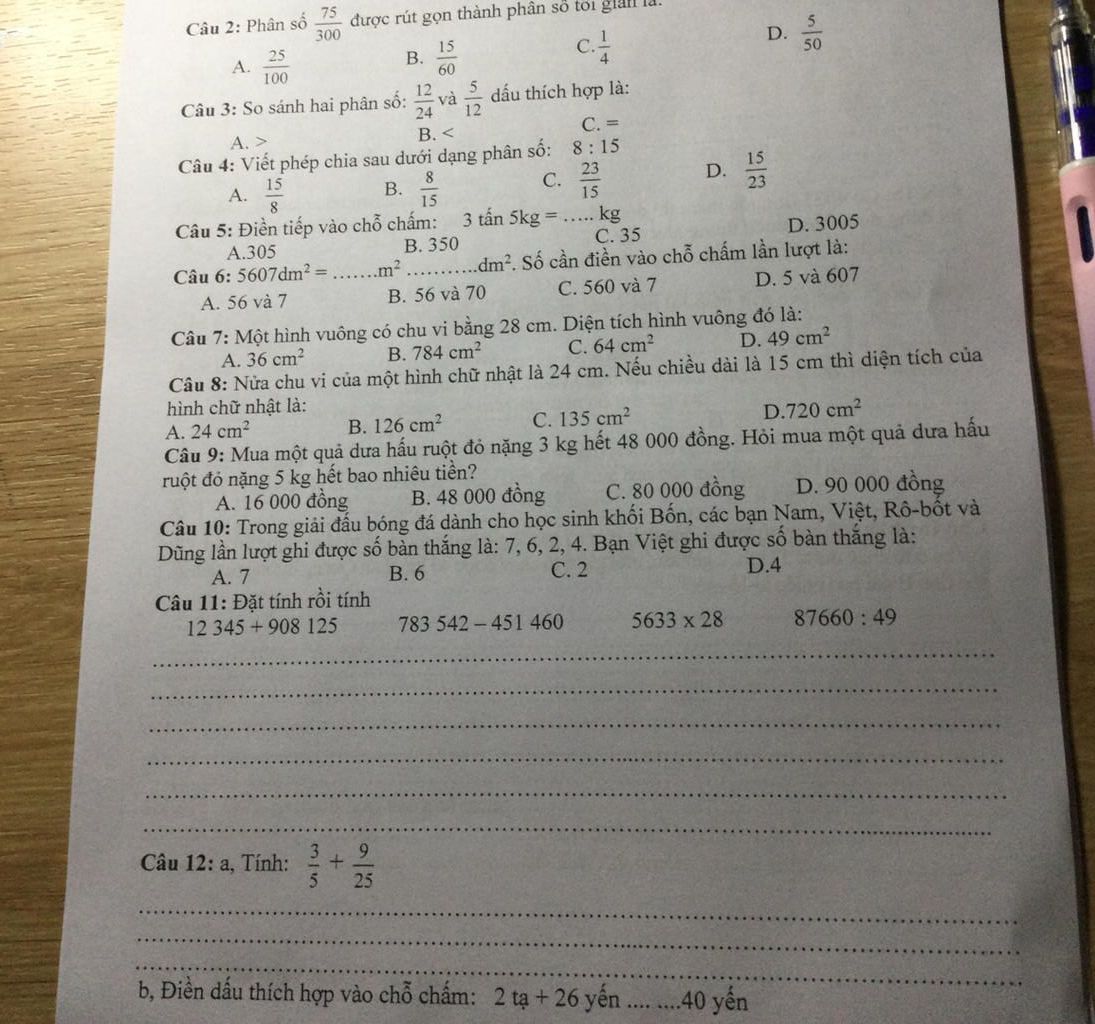 & \text{Câu 5: } \\