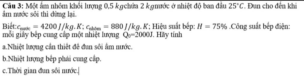 b) Nhiệt lượng bếp cần phải cung cấp là: