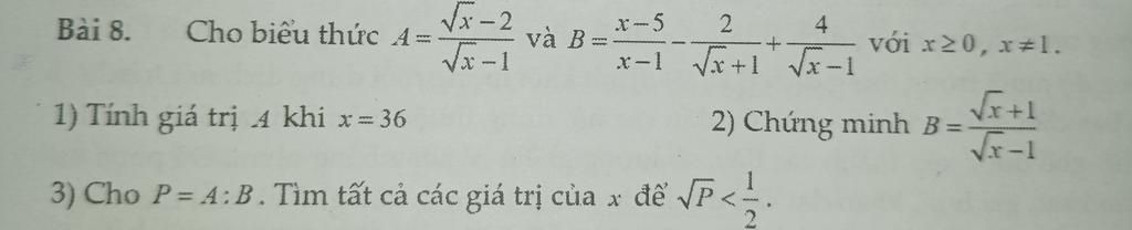 Ta có: `\sqrt{P}<1/2=>P<1/4`