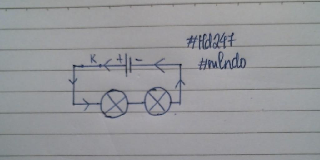 vẽ mạch điện theo yêu cầu sau: 1 pin, 2 đèn, 1 khoa, chièu dòng điện