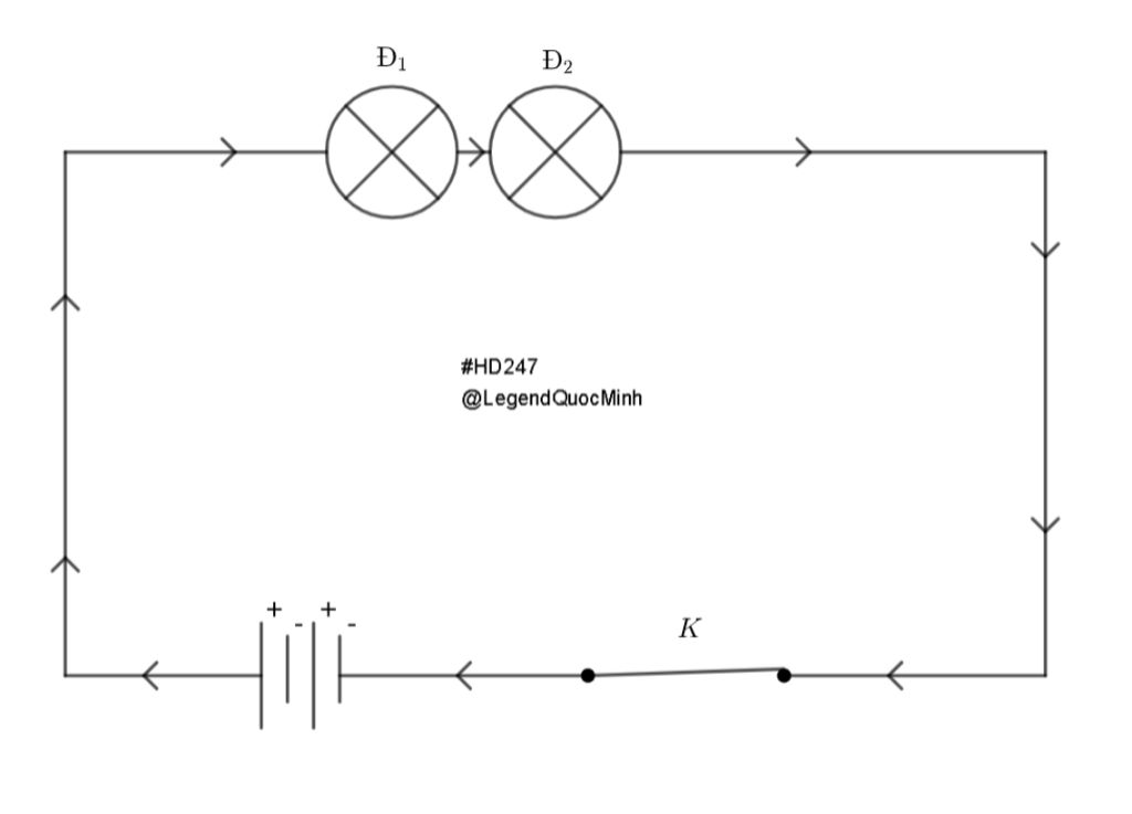 vẽ mạch điện theo yêu cầu sau: 1 pin, 2 đèn, 1 khóa, chièu dòng điện