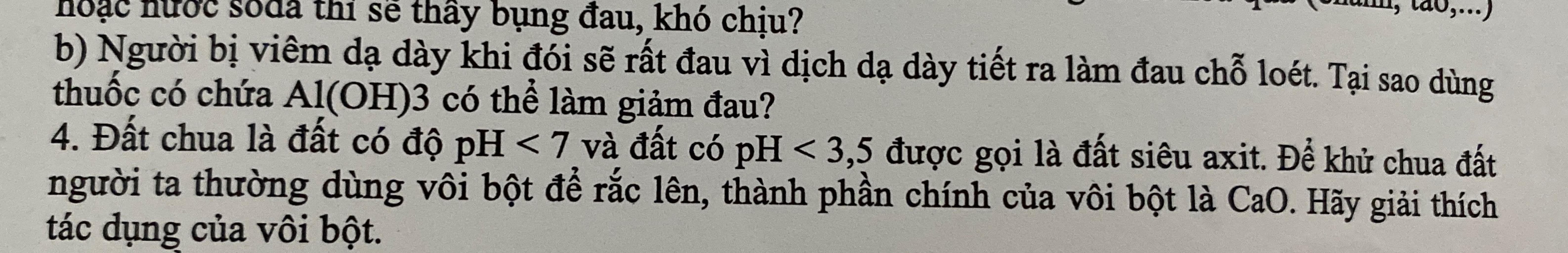 `@` Bột vôi khi rắc vào đất sẽ tác dụng với nước tạo thành `Ca(OH)_2` ,`Ca(OH)_2` sẽ tác dụng với acid có trong đất tạo muối và nước giúp trung hòa đất và tăng độ `pH`