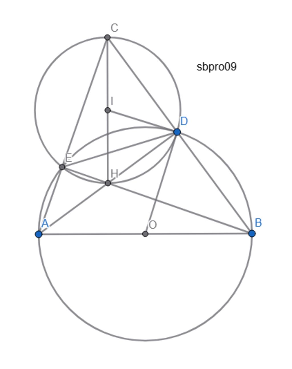 `⇒ 4` điểm `C, D, H, E` cùng thuộc đường tròn `(I; (CH)/2) ⇒` tứ giác `CDHE` nội tiếp