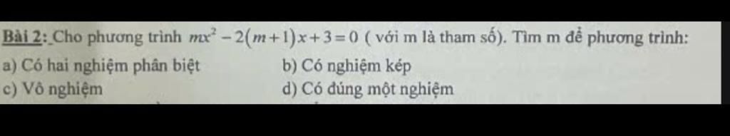 Để pt có `1` nghiệm thì `m=0=>x=3/2` ( ở câu a)