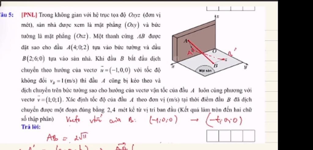 B(2;6;0) tựa vào sàn nhà. Khi đầu B bắt đầu dịch