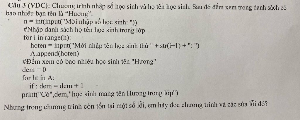 2. Chỗ if sai và thiếu đoạn code lấy tên "Hương"$\\$