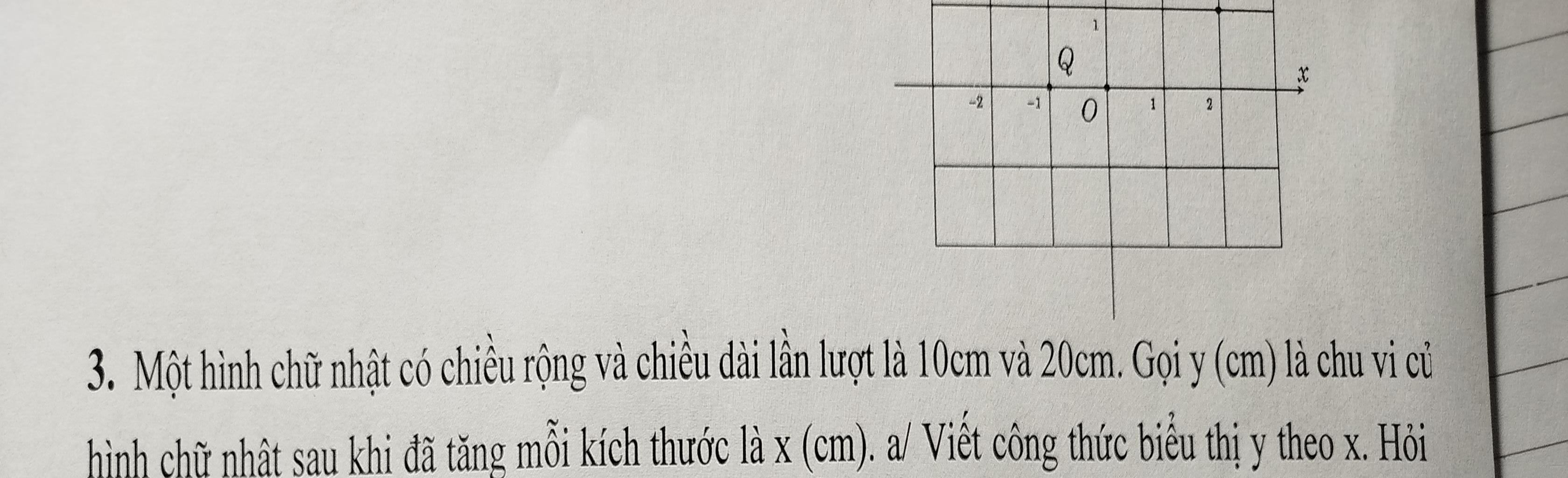 - Độ dài chiều dài của hình chữ nhật sau khi tăng `x (cm)` là `20+x (cm)`