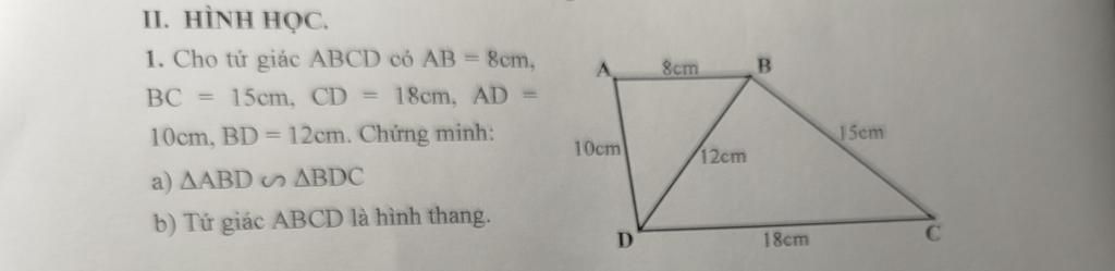 ` b) ` Do ` DeltaABD ` $\backsim$ ` DeltaBDC ` nên: