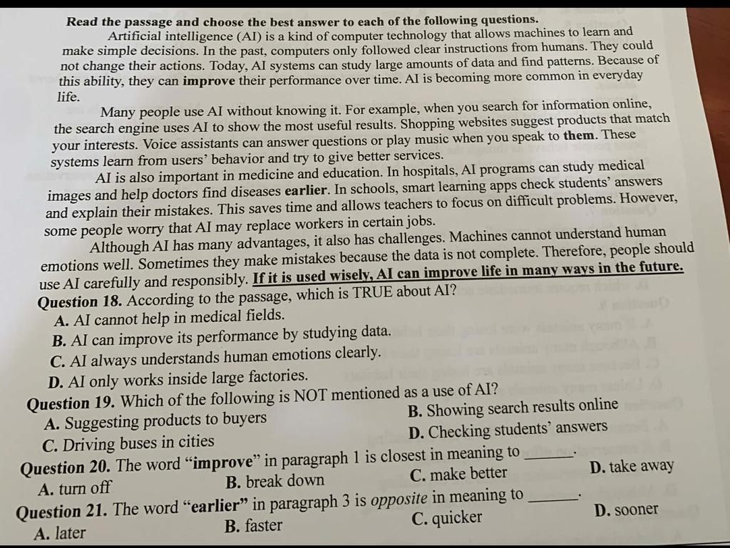 → Câu gạch chân: If used wisely, AI can improve life.