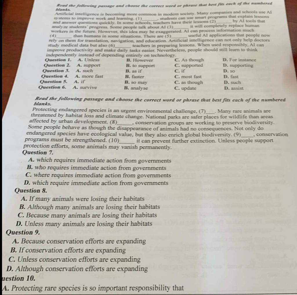 Read the following passage and choose the correct word or phrase that best fits each of the numbered