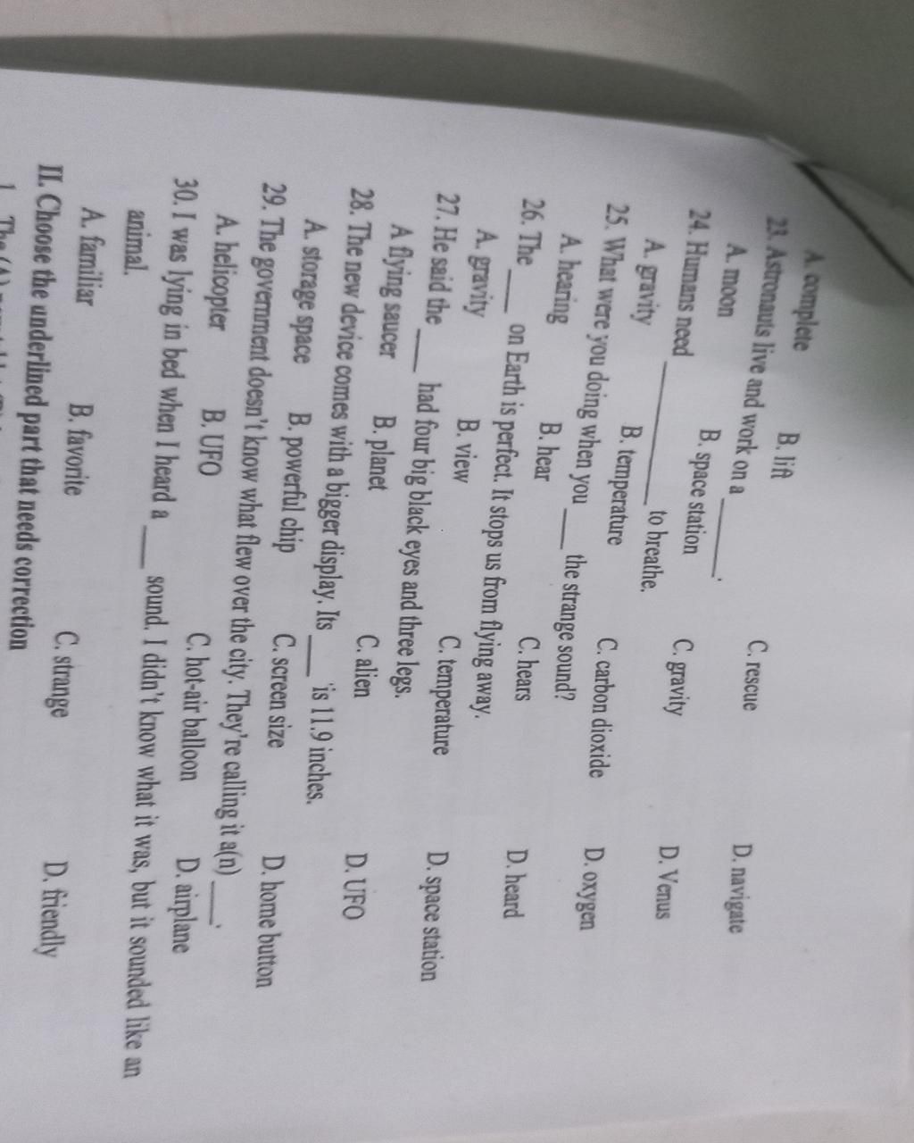 25. What were you doing when you _______ the strange sound?
