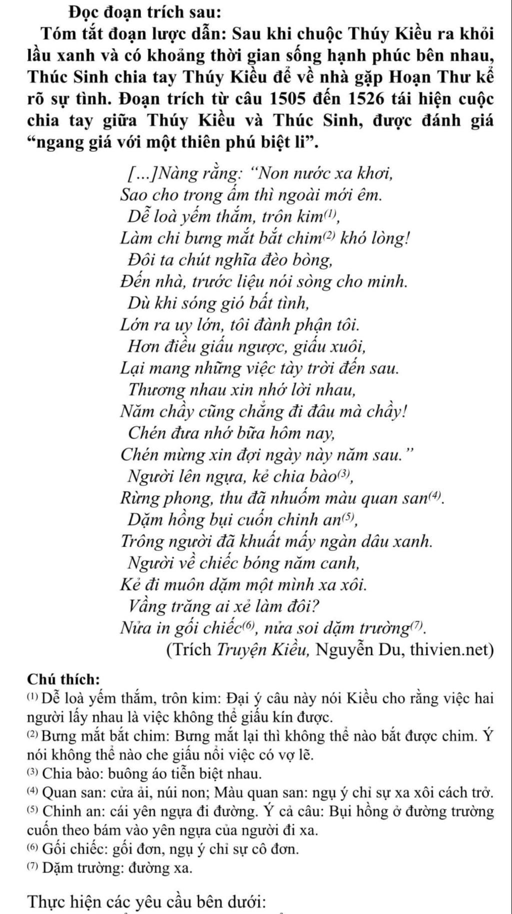 câu 8; đánh giá chung về nghệ thuật sử dụng từ ngữ của Nguyễn Du trong đoạn trích