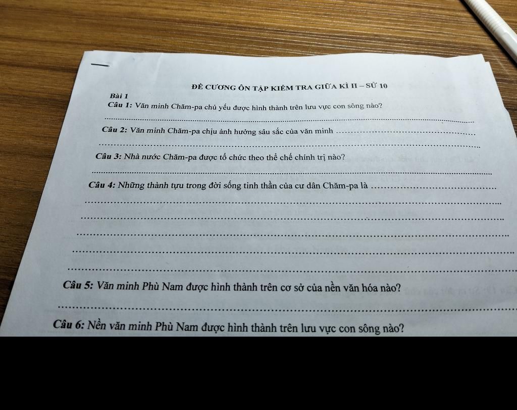 Câu 1: Văn minh Chăm-pa chủ yếu được hình thành trên lưu vực con sông nào?