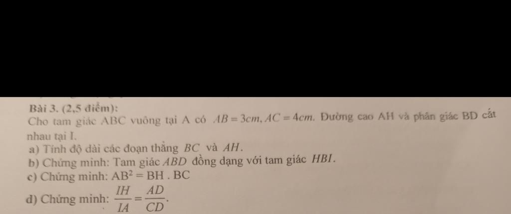 $\frac{AB}{BH}$ = $\frac{BC}{AB}$ => $\frac{BH}{AB}$ = $\frac{AB}{BC}$(câu c)