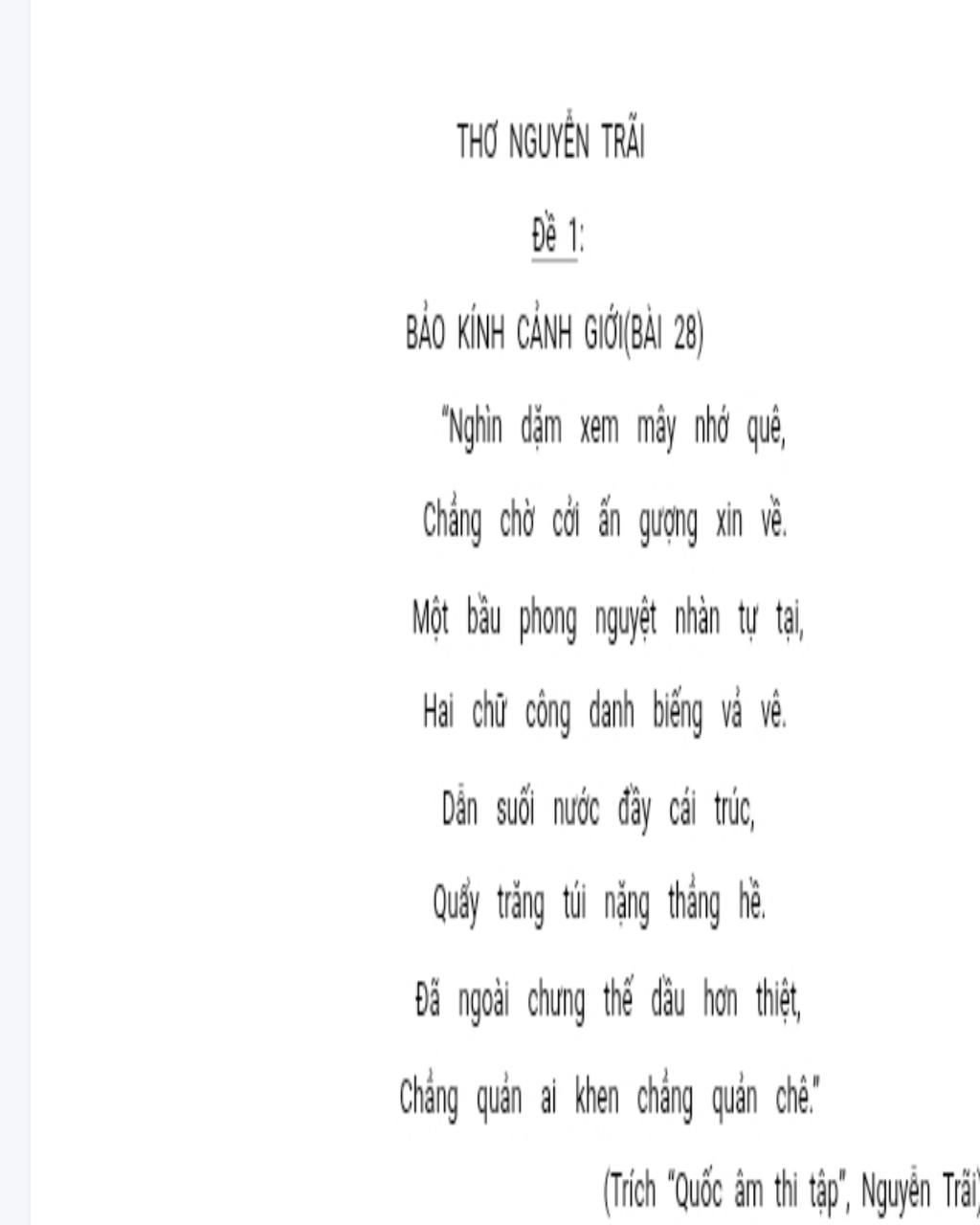 6Qua bài thơ em cảm nhận được gì về vẻ đẹp nhân cách của Nguyễn Trãi?