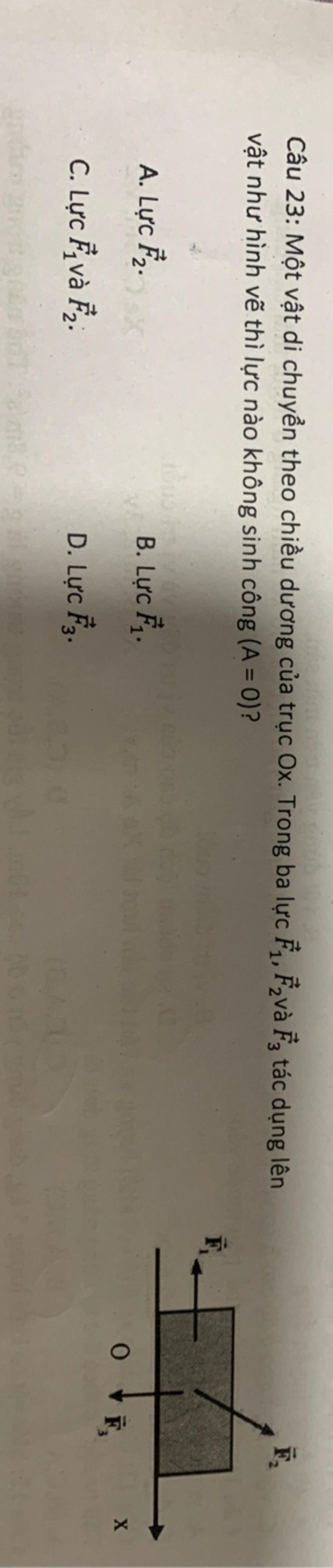 còn lực `vec(F_2)` và `vec(F_1)` lần lượt hợp với chiều chuyển động một góc `alpha ne 90^o`