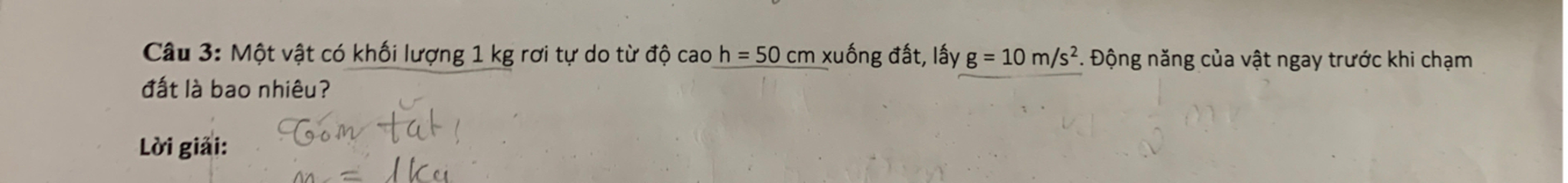 Động năng của vật ngay trước khi chạm đất = cơ năng của vật: