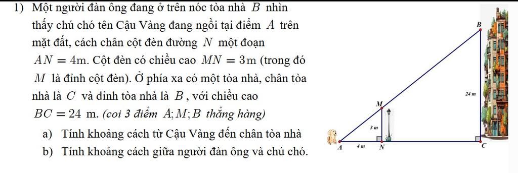 Vậy khoảng cách từ Cậu Vàng đến chân tòa nhà là `32m`