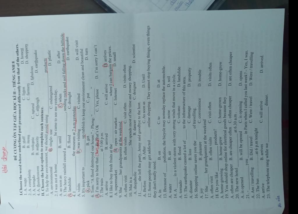 Giải thích: "Tornado" (vòi rồng/lốc xoáy) là cơn bão mạnh với gió xoáy theo vòng tròn.