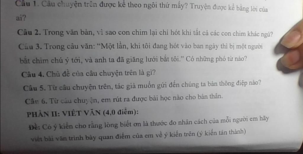 Câu 2. Trong văn bản, vì sao con chim lại chỉ hót khi tất cả các con chim khác ngủ