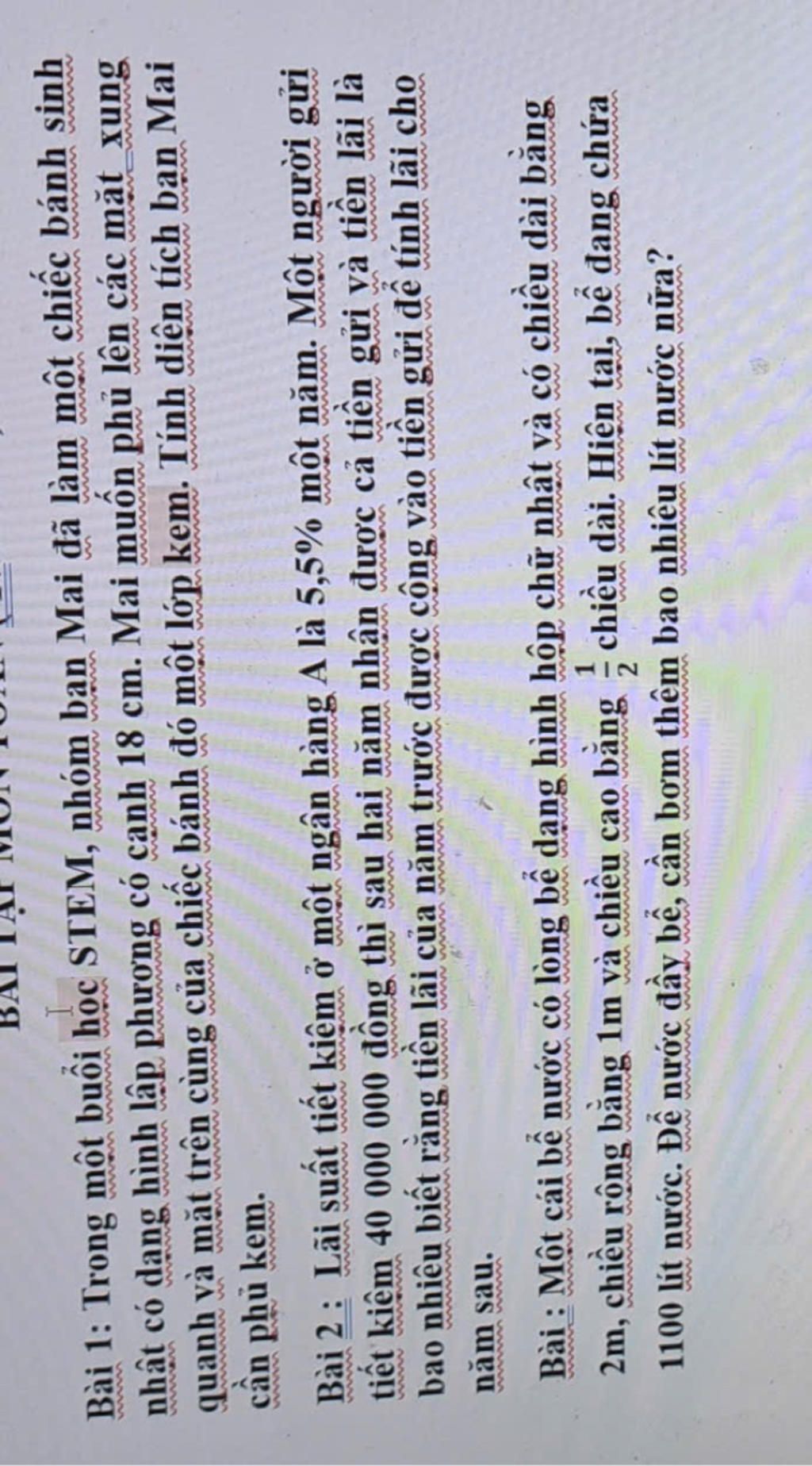 Bài 3: Tính lượng nước cần bơm thêm vào bể