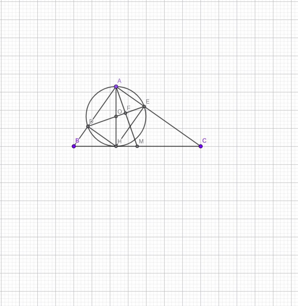 cho tam giác abc vg tại a,ab<ac,vẽ đcao ah.đtron (O) đkính ah lần lượt cắt ab,ac tại d,e