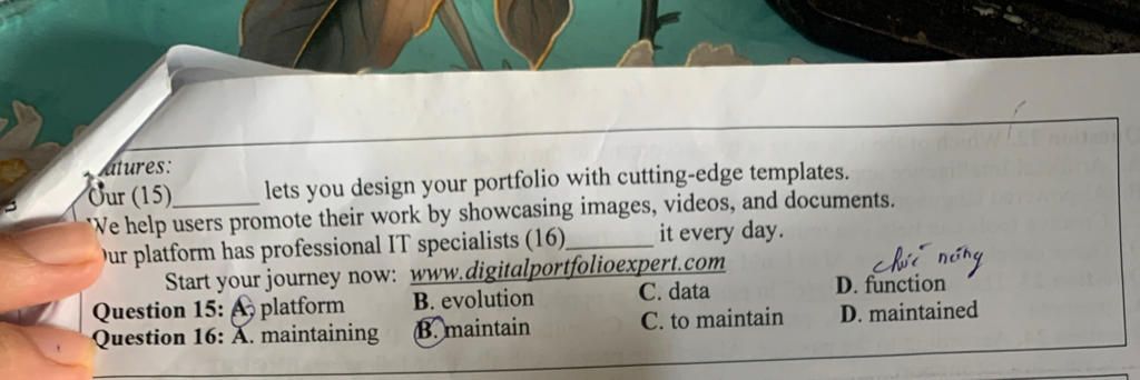 `15. ` A. platform: nền tảng