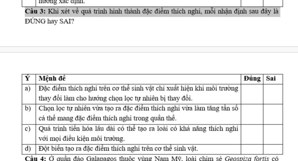 Đặc điểm thích nghi không chỉ xuất hiện khi môi trường thay đổi mà: