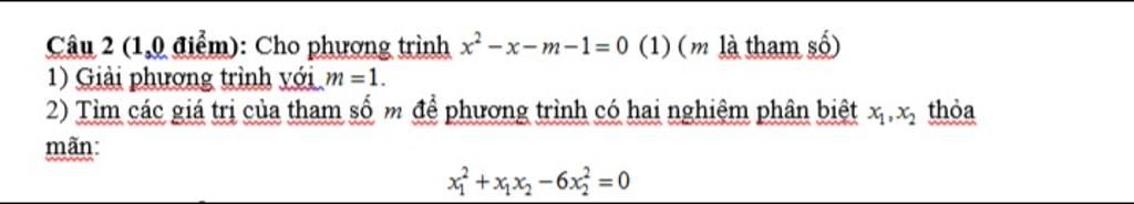 Để phương trình có hai nghiệm phân biệt thì: `Δ>0` hay `4m+5>0` nên `m> -5/4`