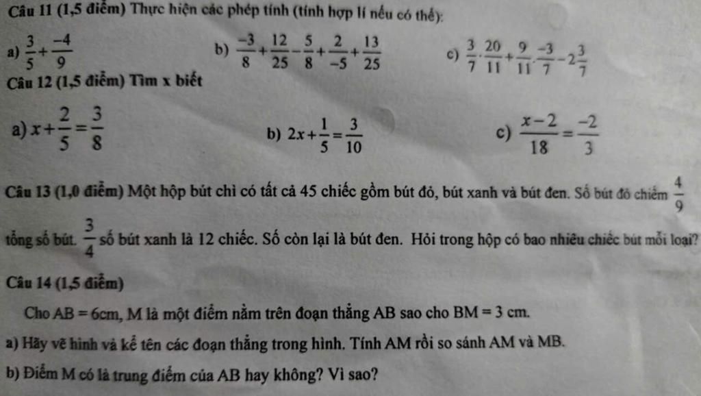 ` b) ` Do ` AM = BM ` và ` M ` nằm trên đoạn thẳng ` AB ` nên: