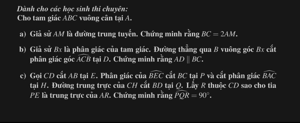 a) Giả sử AM là đường trung tuyến. Chứng minh rằng BC =2AM.